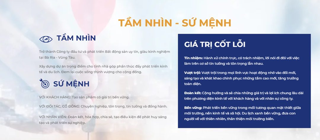 - Trở thành một công ty đầu tư và phát triển bất động sản có uy tín tại Bà Rịa – Vũng Tàu với nhiều năm kinh nghiệm.